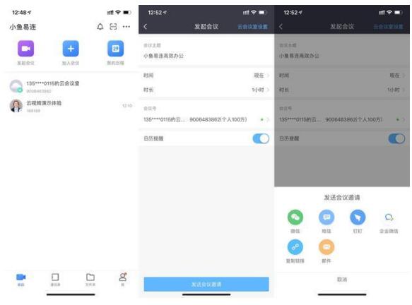 發(fā)起會(huì)議:點(diǎn)擊主界面「發(fā)起會(huì)議」按鈕;填寫會(huì)議主題、選擇開始時(shí)間、會(huì)議時(shí)長等基本信息后,點(diǎn)擊「發(fā)送會(huì)議邀請(qǐng)」按鈕;將會(huì)議邀請(qǐng)通過微信、短信、企業(yè)微信、郵件、釘釘?shù)劝l(fā)給參會(huì)用戶即可,與會(huì)人員一鍵就能加入會(huì)議;